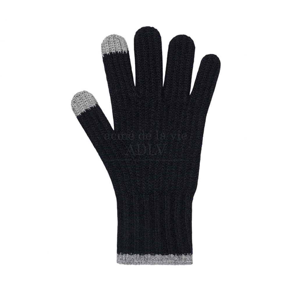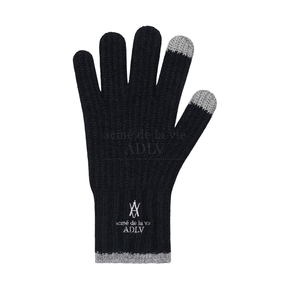 A LOGO EMBLEM EMBROIDERY KNIT GLOVES BLACK
