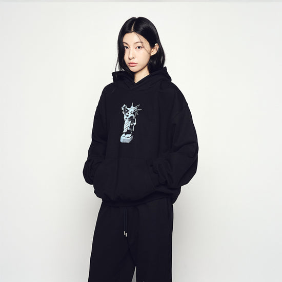AC BEAR STATUE OF LIBERTY HOODIE BLACK | 100% Cotton | Made in Korea