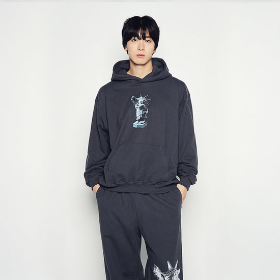 AC BEAR STATUE OF LIBERTY HOODIE CHARCOAL | 100% Cotton | Made in Korea