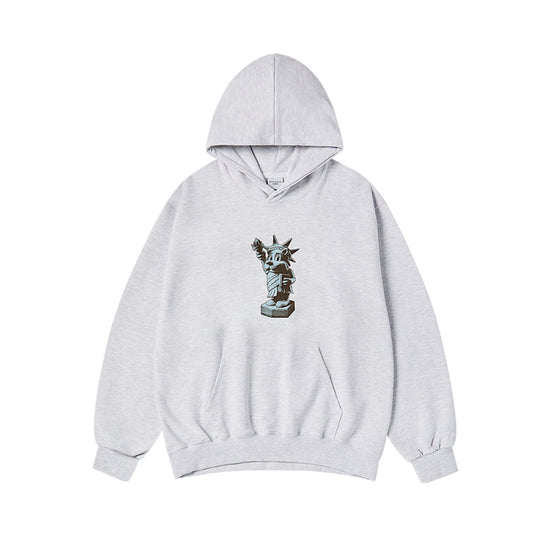 A cozy and stylish melange grey hoodie featuring the ADLV AC Bear reimagined as the Statue of Liberty. Made from 100% premium cotton, this hoodie offers a soft, warm feel and a relaxed fit—perfect for layering during cooler seasons.