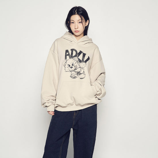 A cozy and playful beige hoodie featuring the signature ADLV Piggyback graphic on the chest. Made from 100% premium cotton, this hoodie offers a warm, soft feel and a relaxed fit—perfect for comfortable everyday wear and cute streetwear styling.