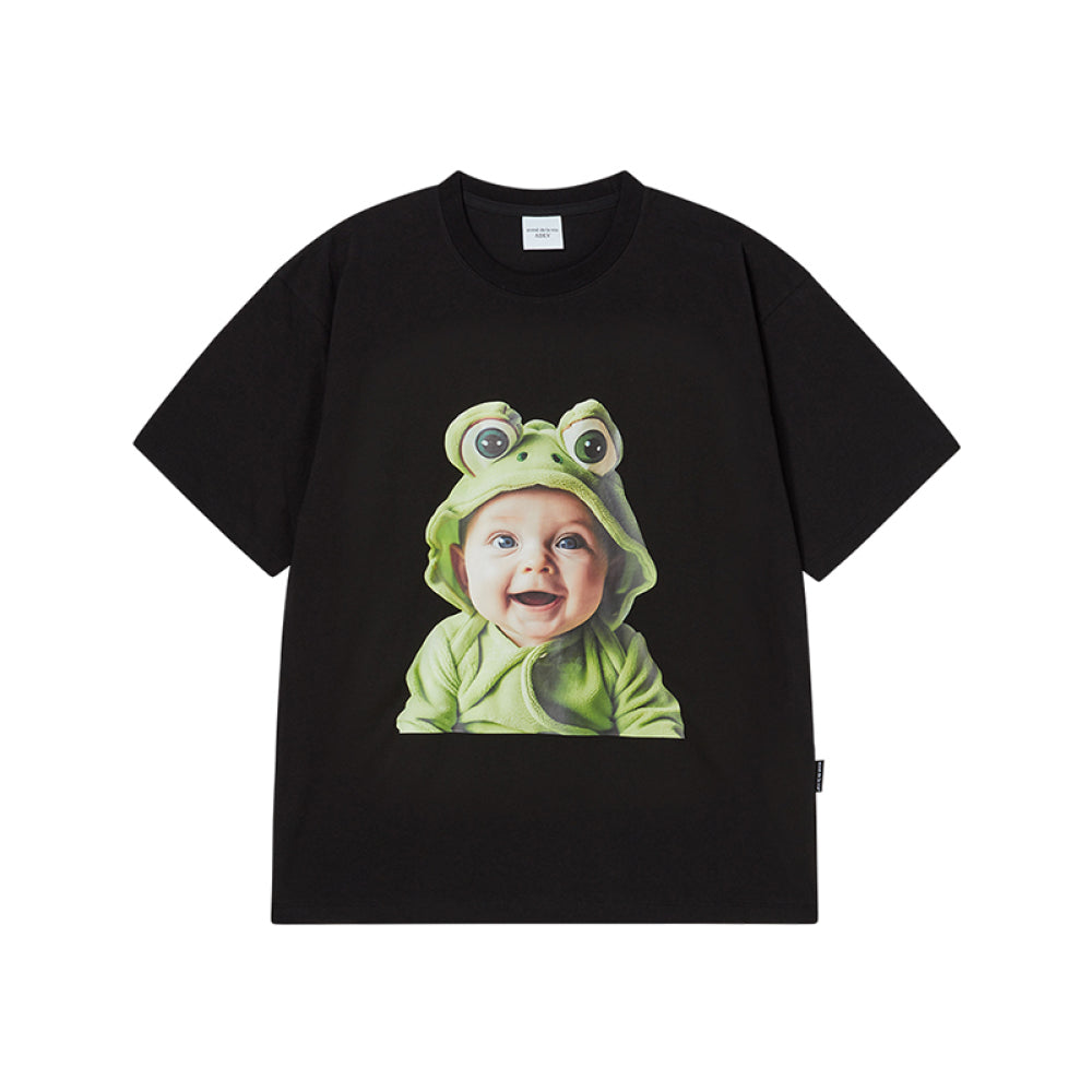 BABY FACE FROG BABY SLEEVE T-SHIRT BLACK