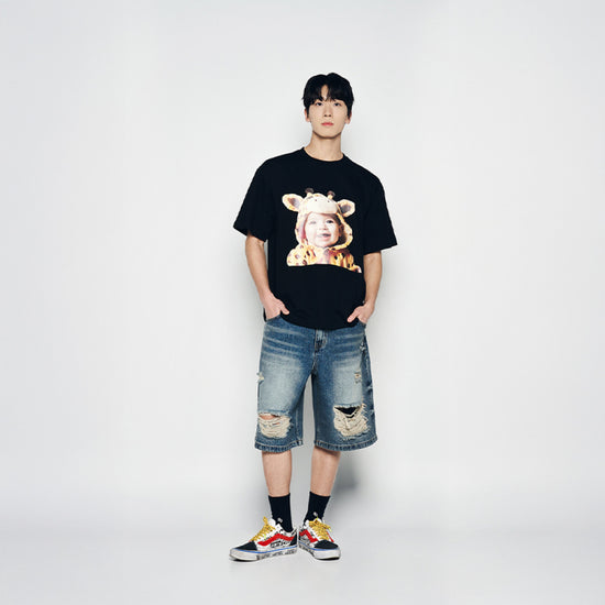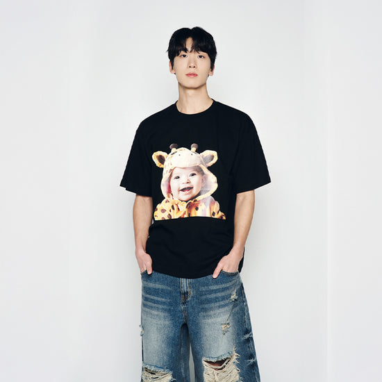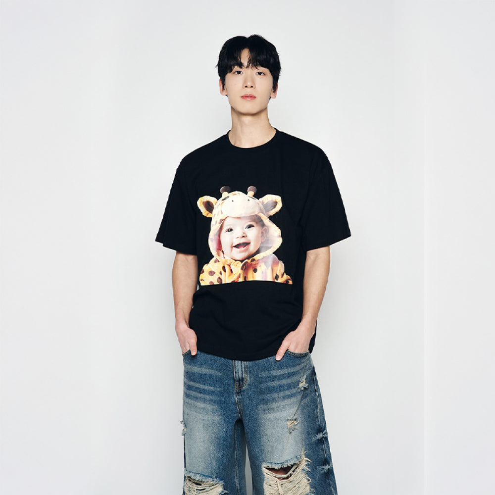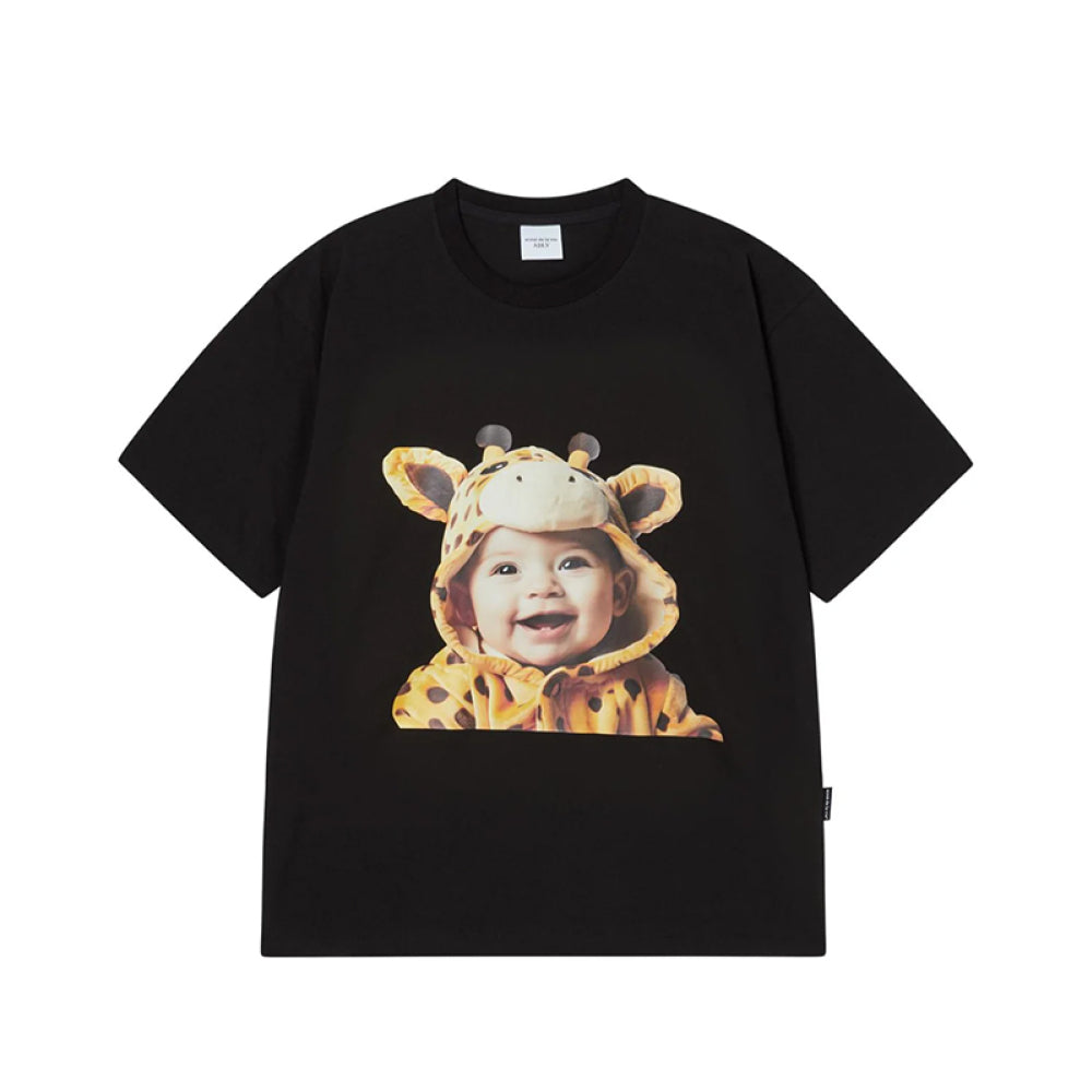 BABY FACE GIRAFFE BABY SLEEVE T-SHIRT BLACK