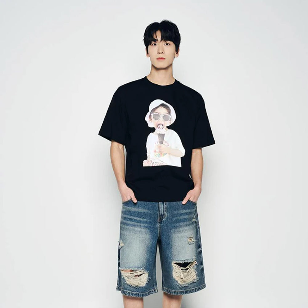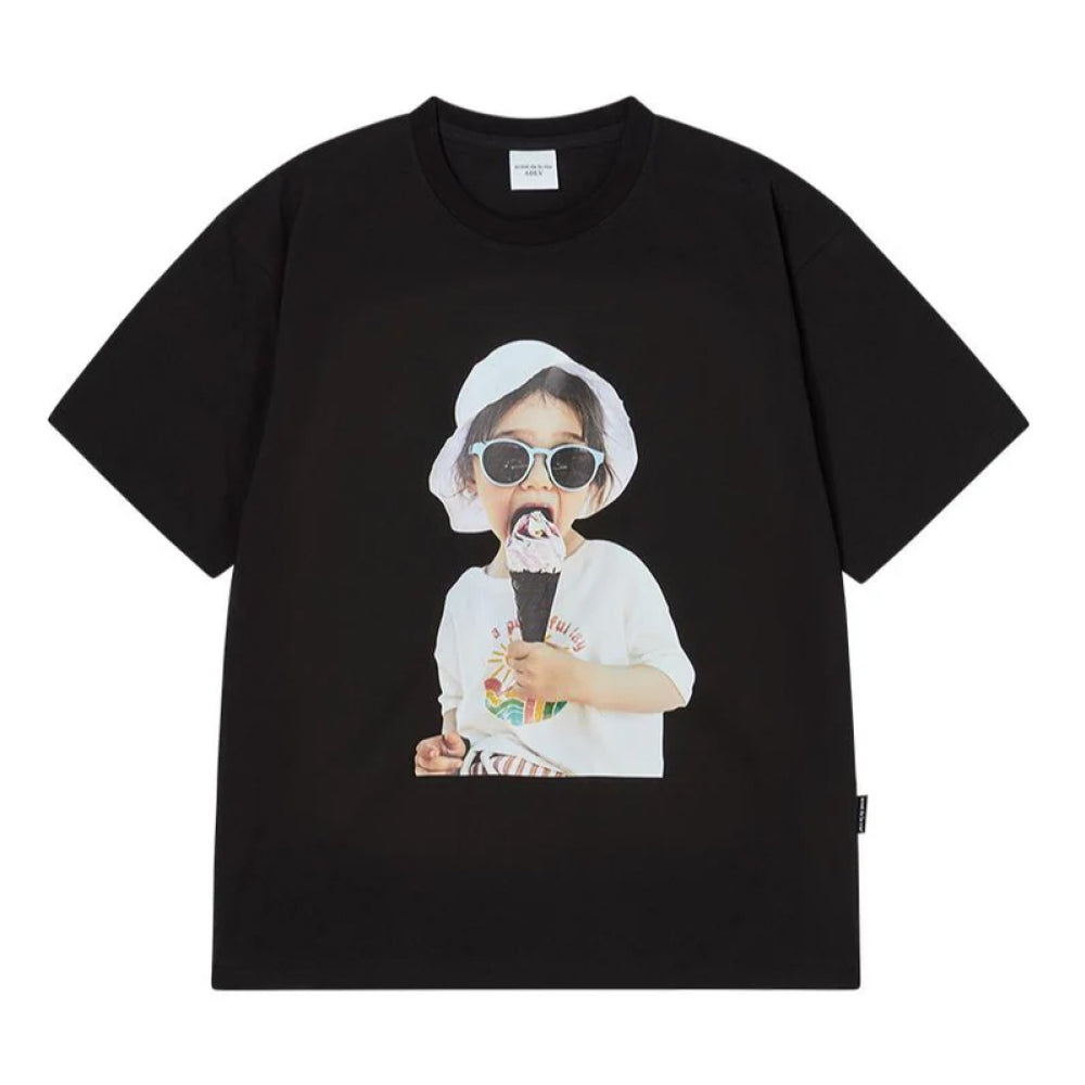 BABY FACE ICECREAM GIRL SLEEVE T-SHIRT BLACK