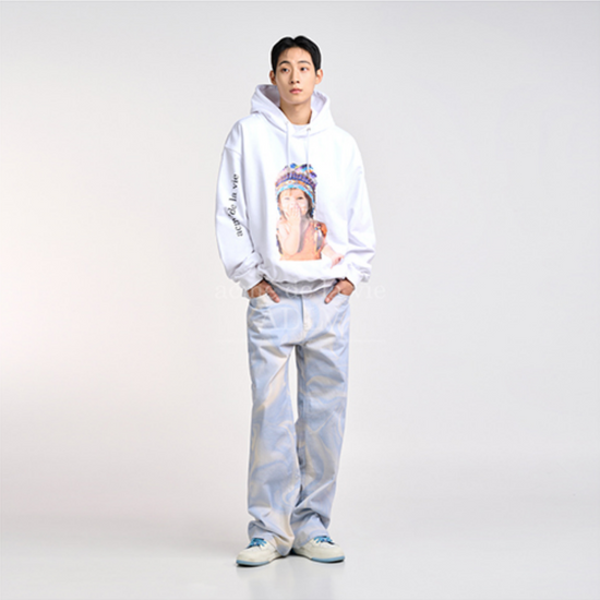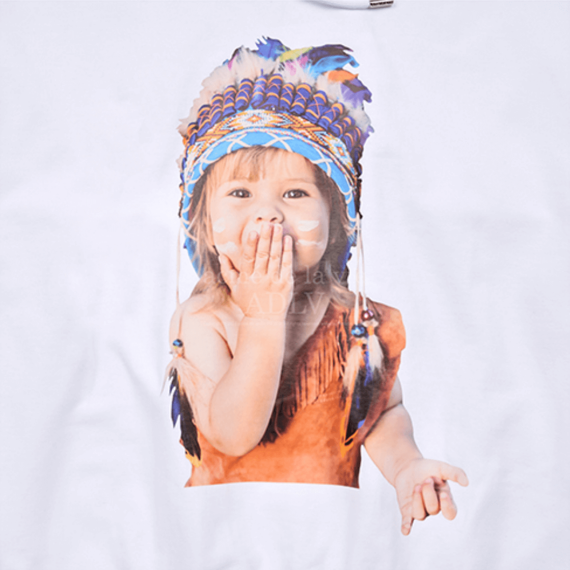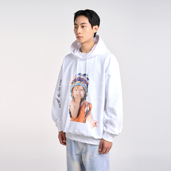 The ADLV Baby Face Indian Boy Hoodie in White showcases ADLV’s signature playful yet fashion-forward aesthetic. Featuring a vivid baby portrait wearing a colorful feather headdress, this hoodie embodies bold individuality and cultural creativity. Crafted from 100% premium cotton in Korea, it offers a soft interior, oversized fit, and exceptional comfort, perfect for both streetwear and daily layering.