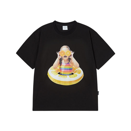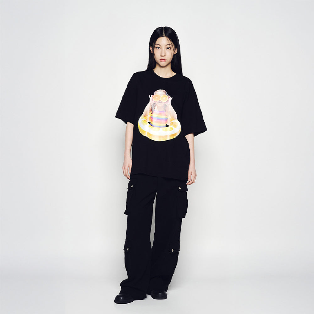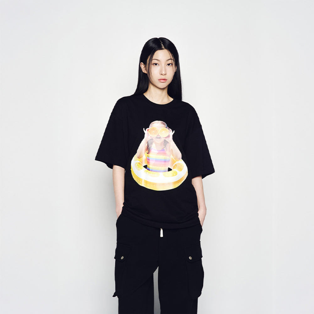 BABY FACE ORANGE TUBE SLEEVE T-SHIRT BLACK