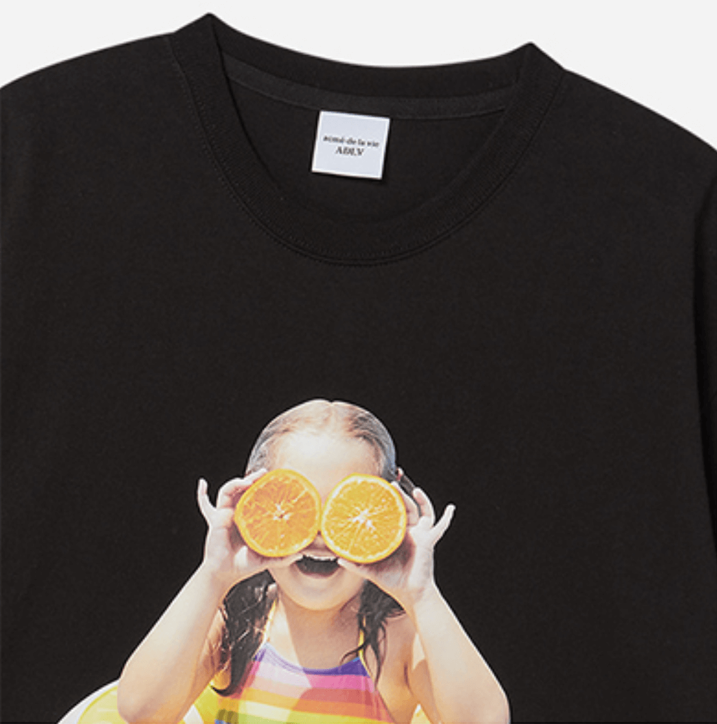 BABY FACE ORANGE TUBE SHORT SLEEVE T-SHIRT BLACK | 100% Cotton | Made in Korea