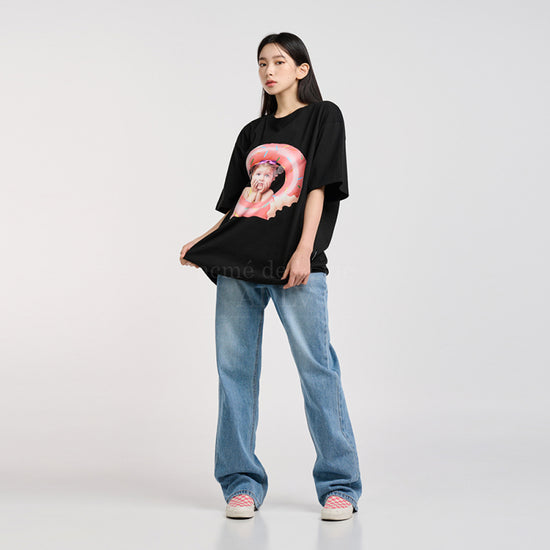 BABY FACE TUBE GIRL SLEEVE T-SHIRT BLACK