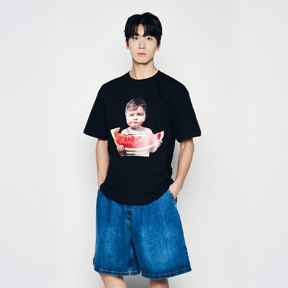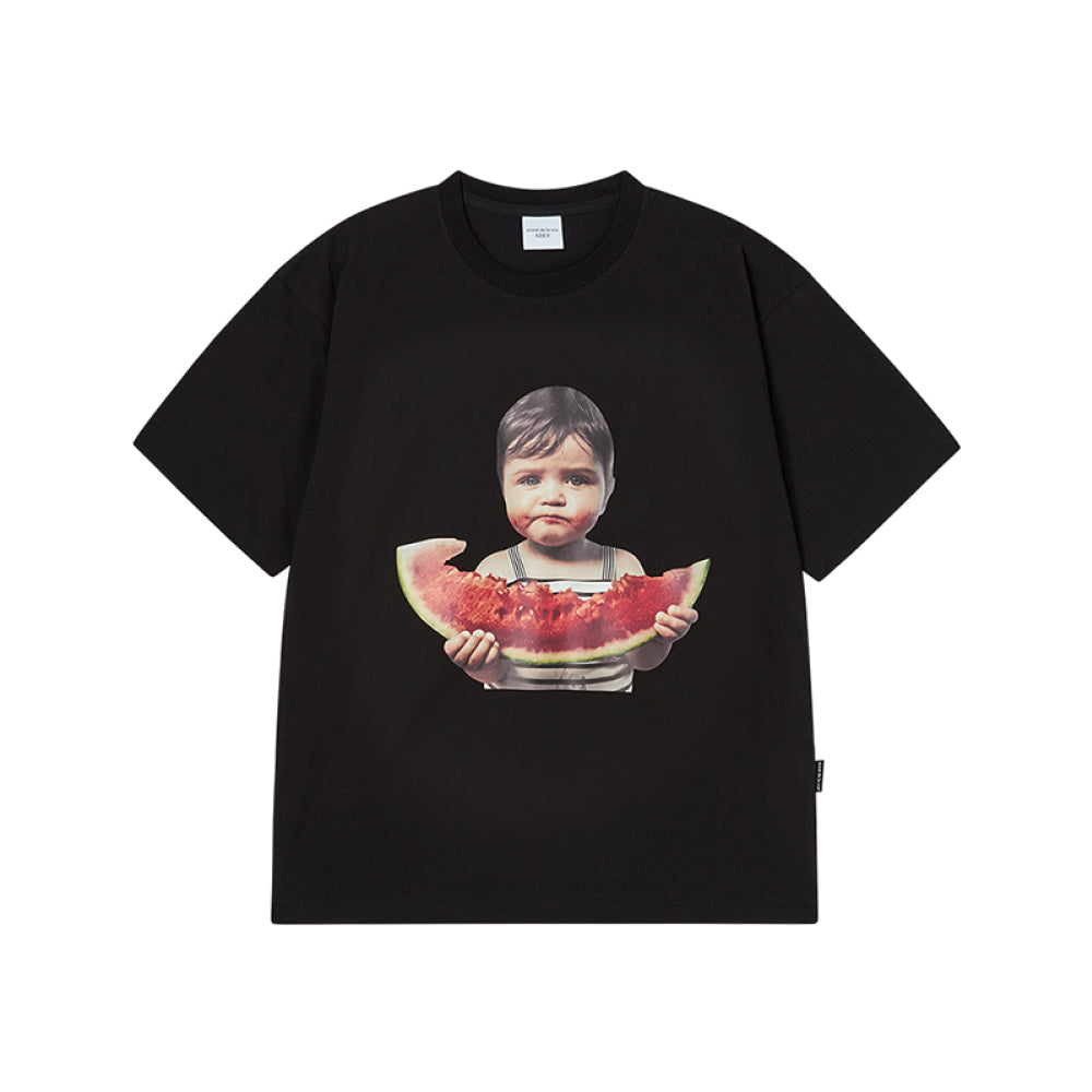 BABY FACE WATERMELON GIRL SLEEVE T-SHIRT BLACK