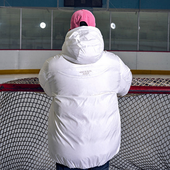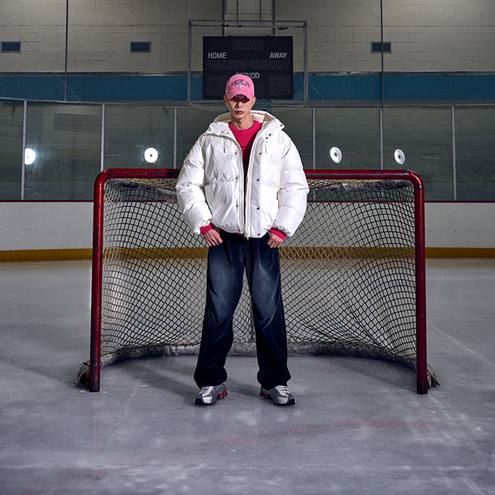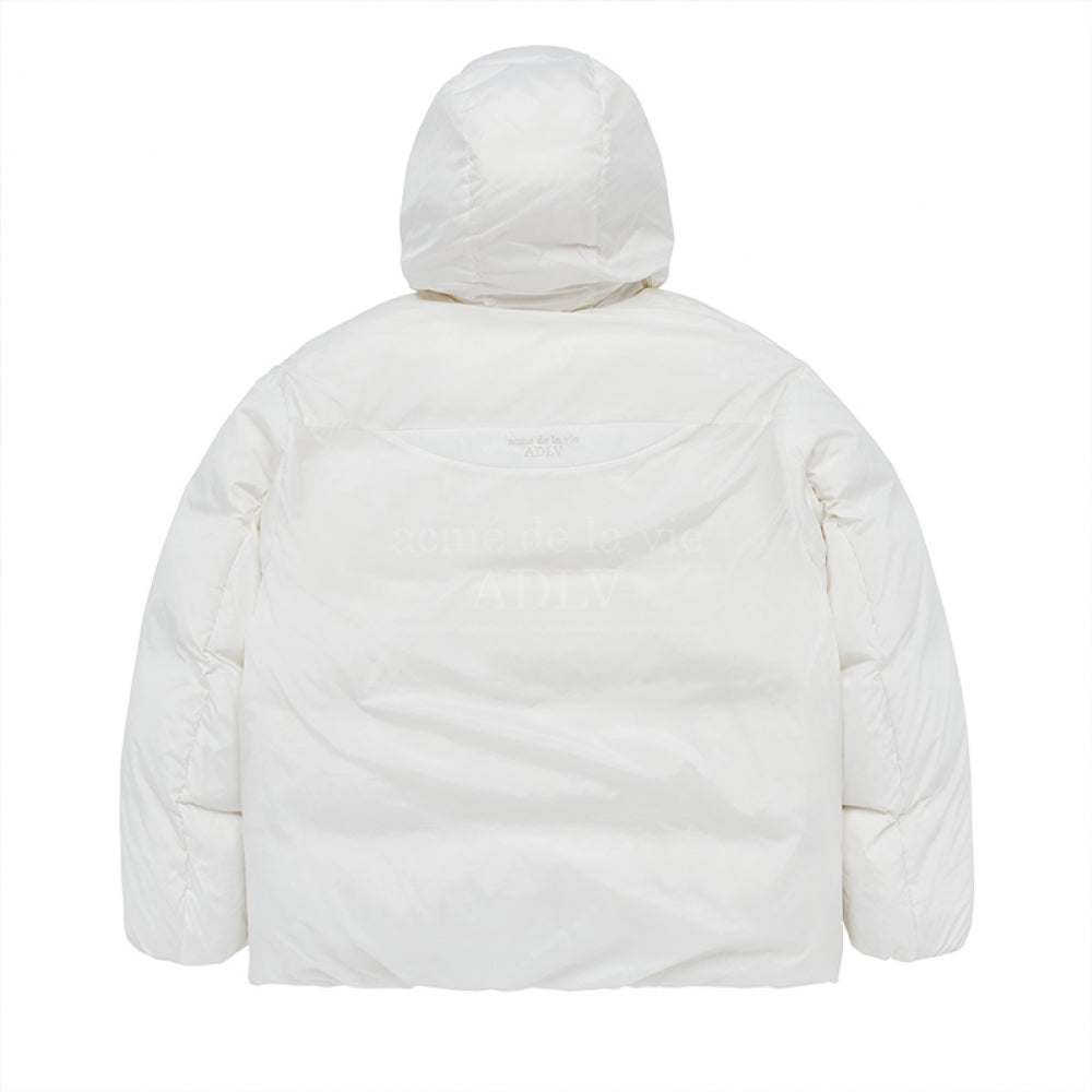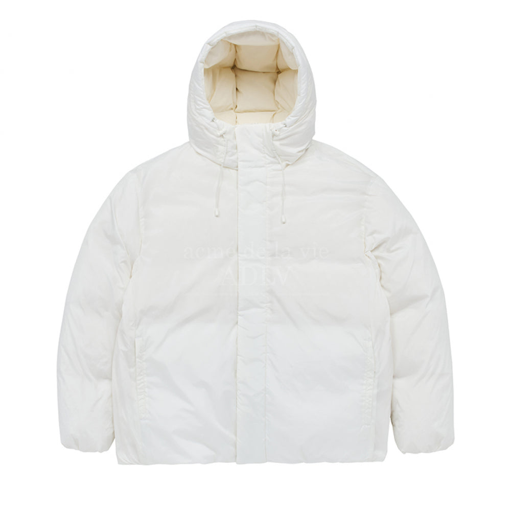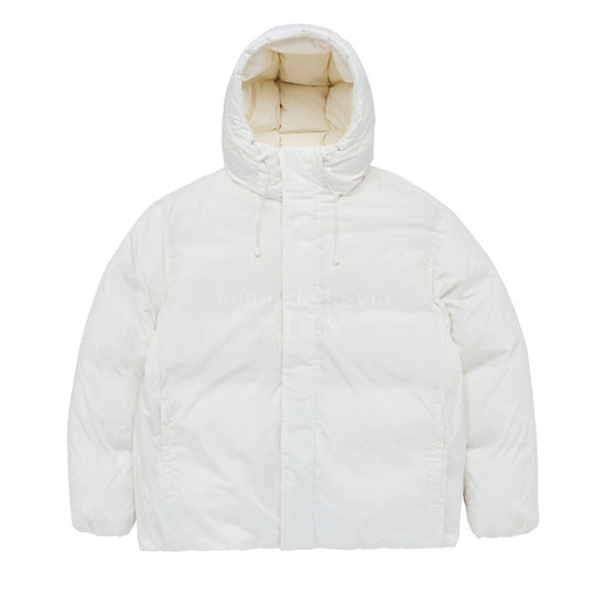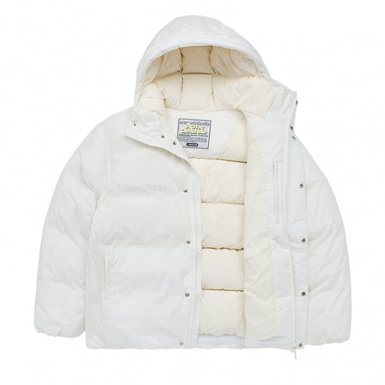 BASIC LOGO NON QUILTING HOODED DUCK DOWN PARKA CREAM