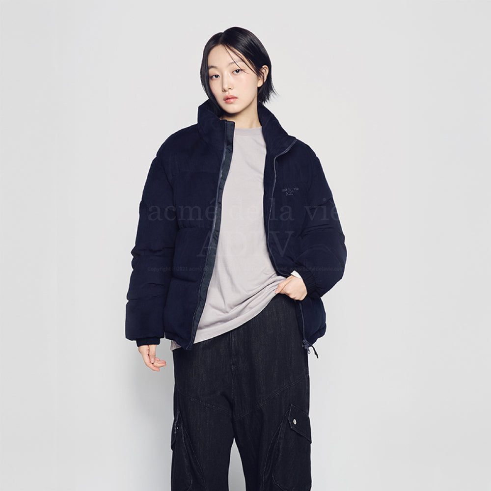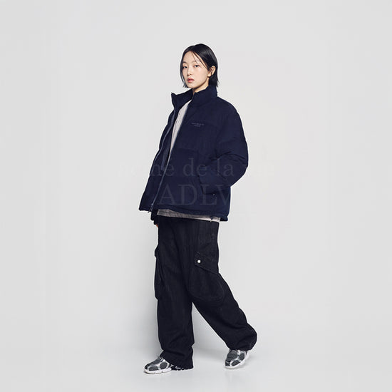 BASIC LOGO OVERSIZE CORDUROY SHORT DUCK DOWN JACKET NAVY