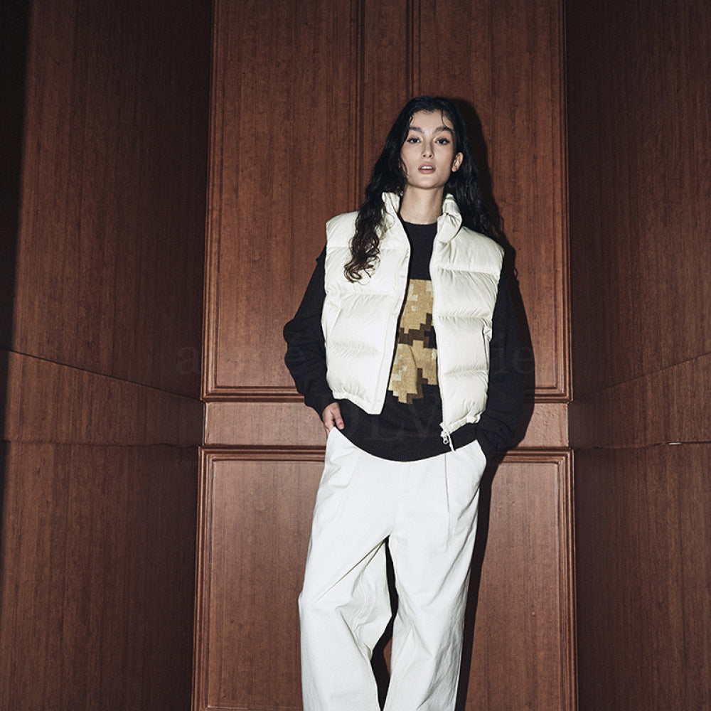 BASIC LOGO OVERSIZE SHORT CROP DUCK DOWN VEST IVORY