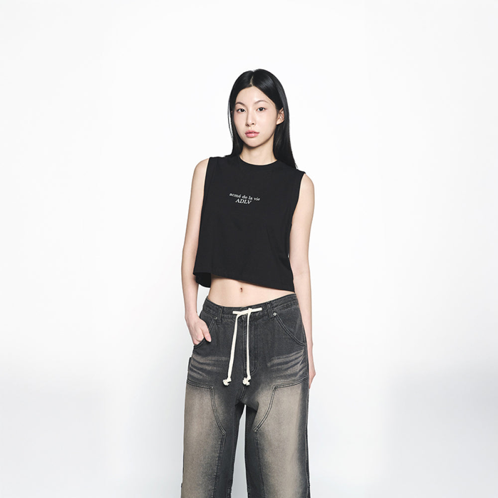 BASIC LOGO WOMAN CROP SLEEVELESS BLACK