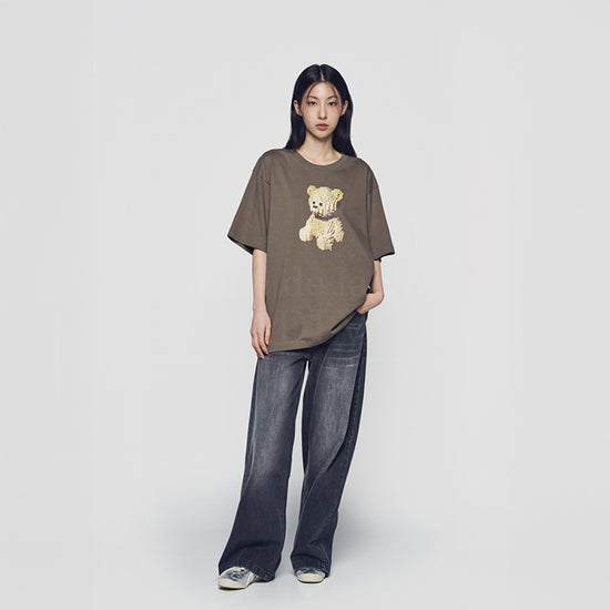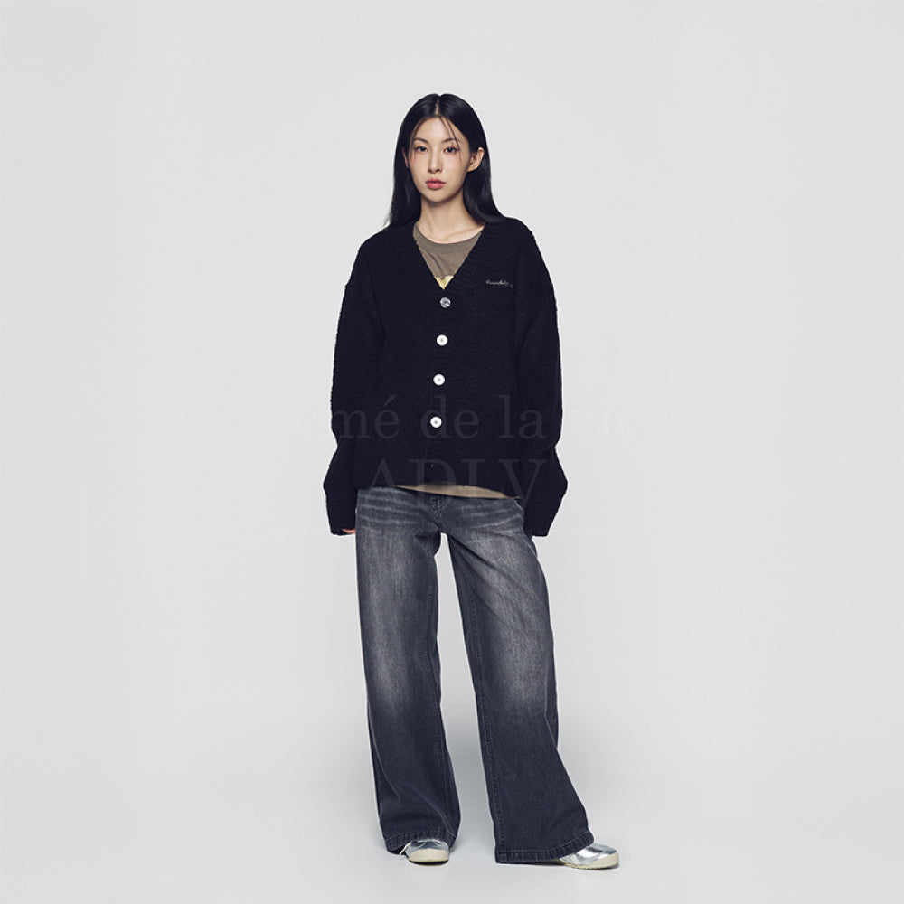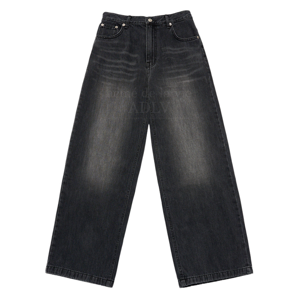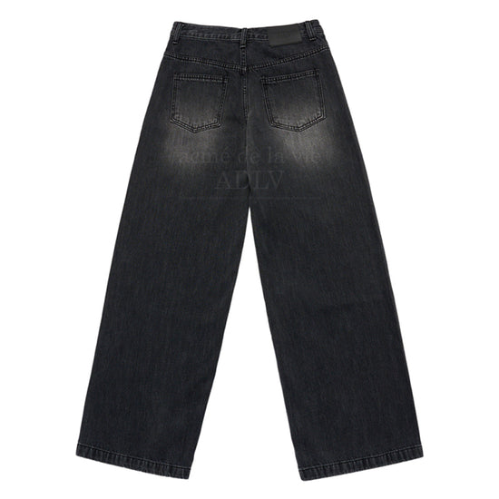 CAT BRUSH WASHING SEMI WIDE WOMAN DENIM PANTS BLACK