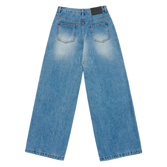 CAT BRUSH WASHING SEMI WIDE WOMAN DENIM PANTS BLUE