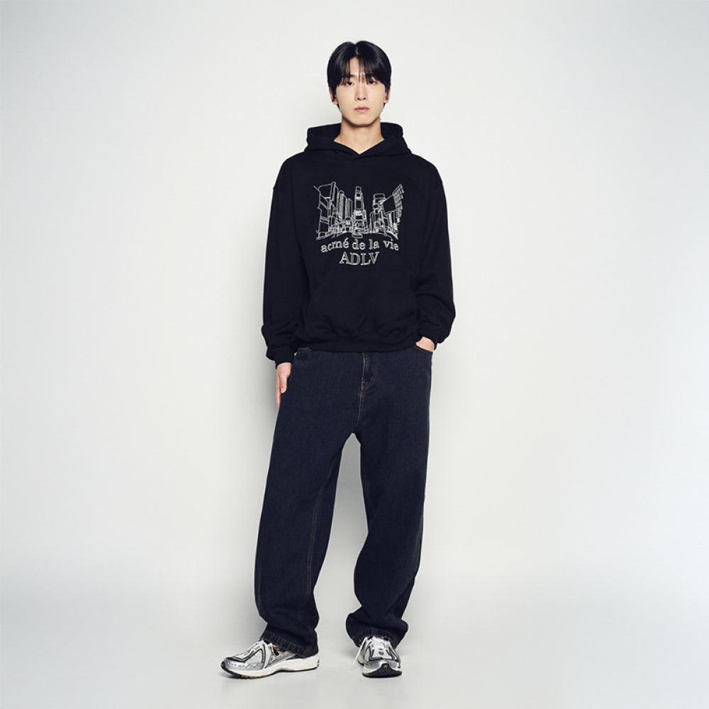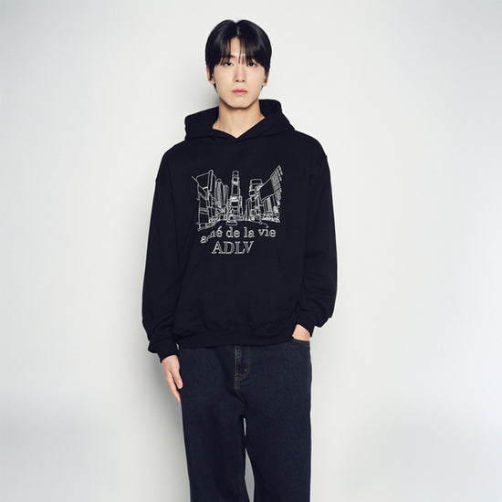 CITY VIEW HOODIE BLACK | 100% Cotton | Made in Korea