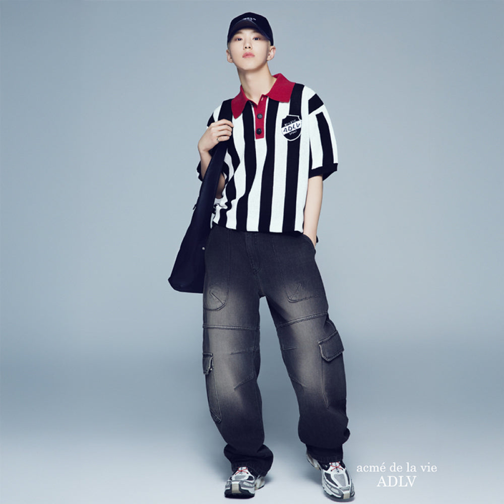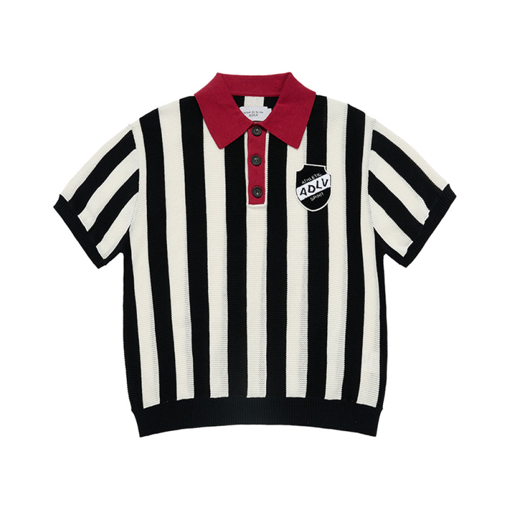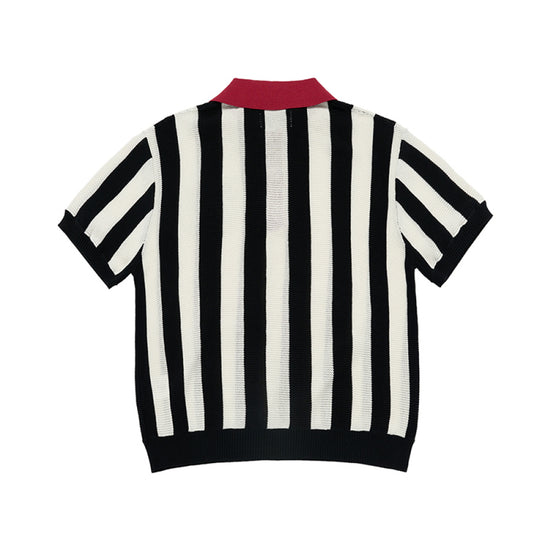 COLLAR POINT STRIPE SHORT SLEEVE KNIT BLACK