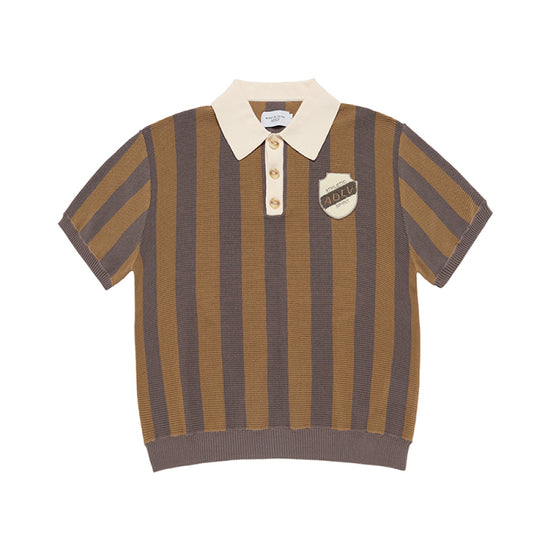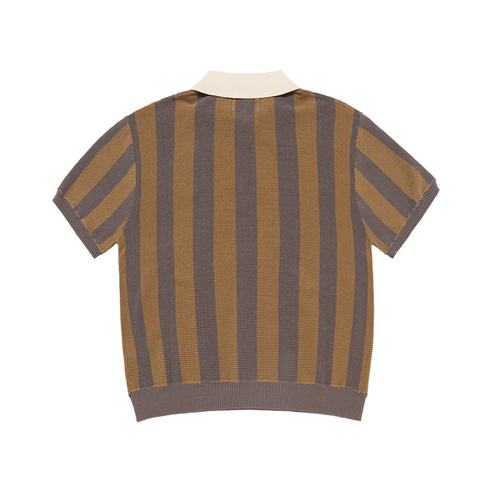 COLLAR POINT STRIPE SHORT SLEEVE KNIT BROWN