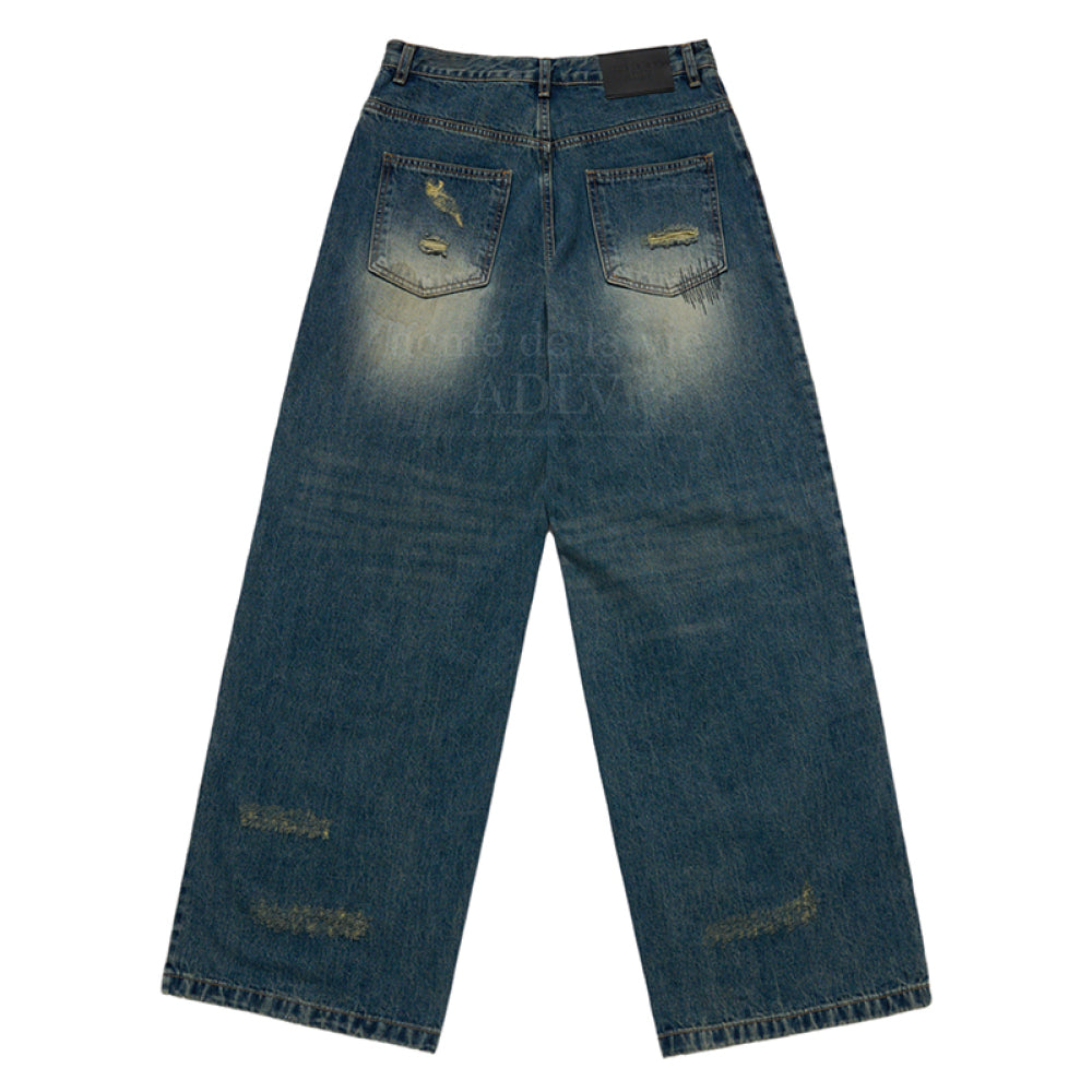 DAMAGE STITCH WASHING DENIM PANTS BLUE