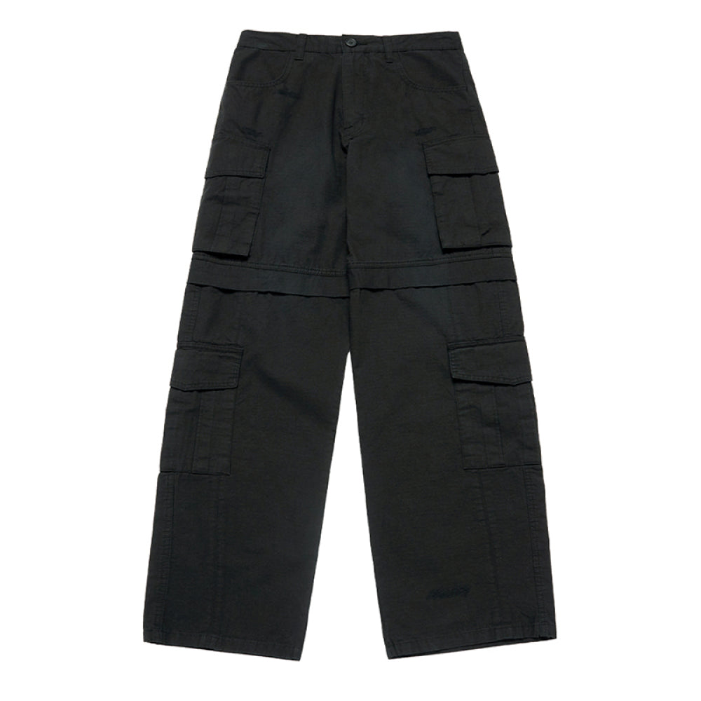 DAMAGE WASHED WIDE CARGO PANTS BLACK