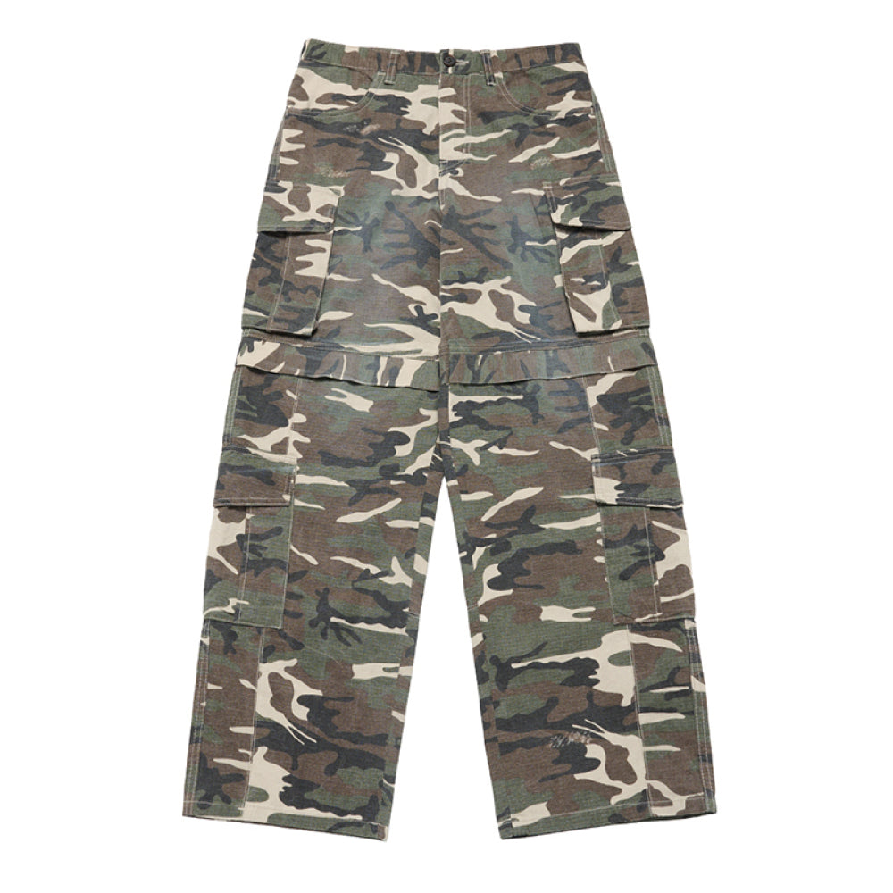 DAMAGE WASHED WIDE CARGO PANTS CAMO
