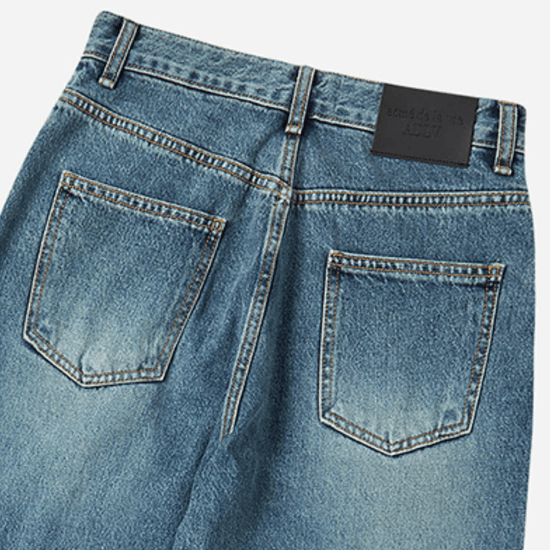 - Mid-wash blue finish for a vintage-inspired aesthetic