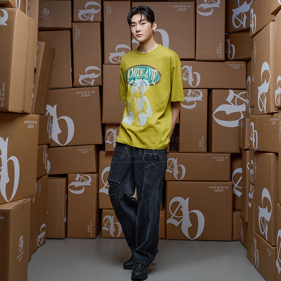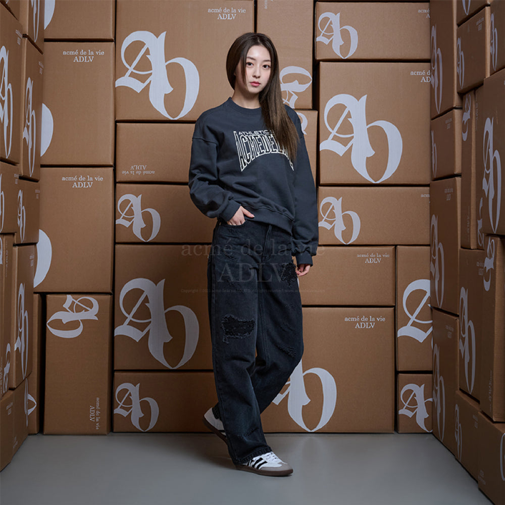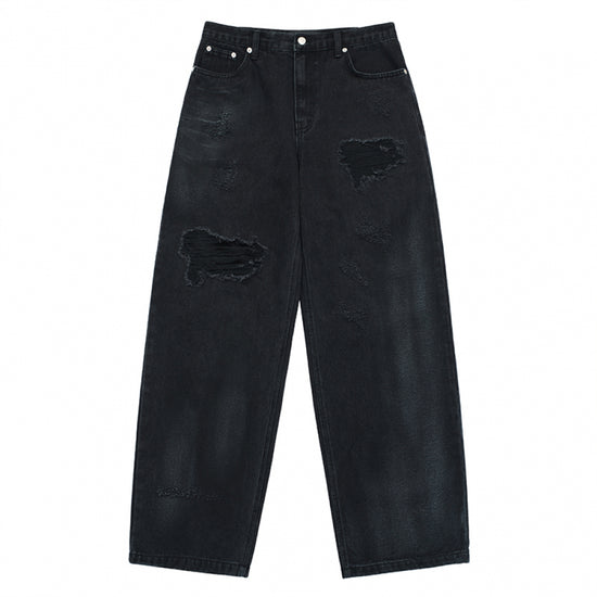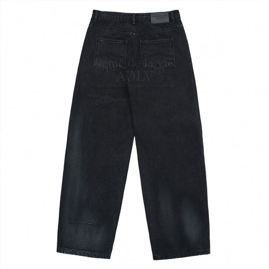 DESTROYED WASHING SPRAY DENIM PANTS BLACK