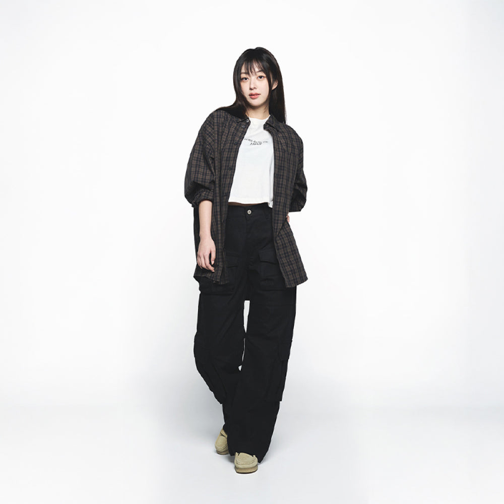 EMBO LOGO OVERSIZE CHECK SHIRTS BLACK