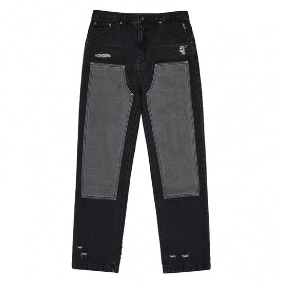 FATIGUE COLOR BLOCK DENIM PANTS BLACK