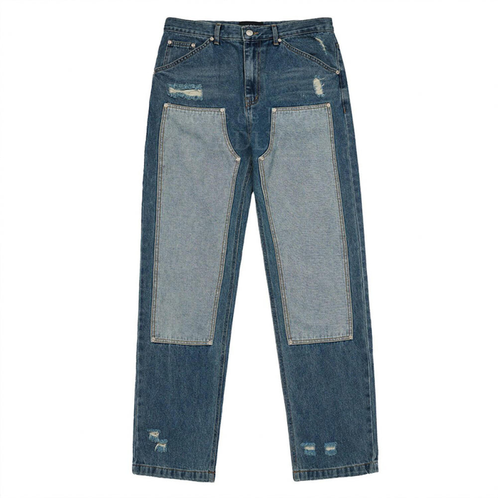 FATIGUE COLOR BLOCK DENIM PANTS BLUE