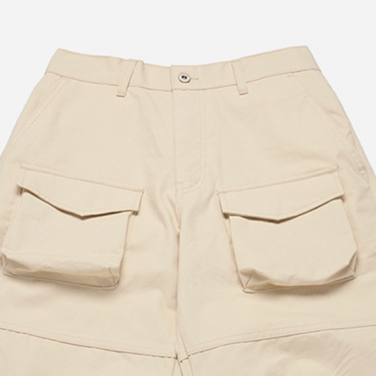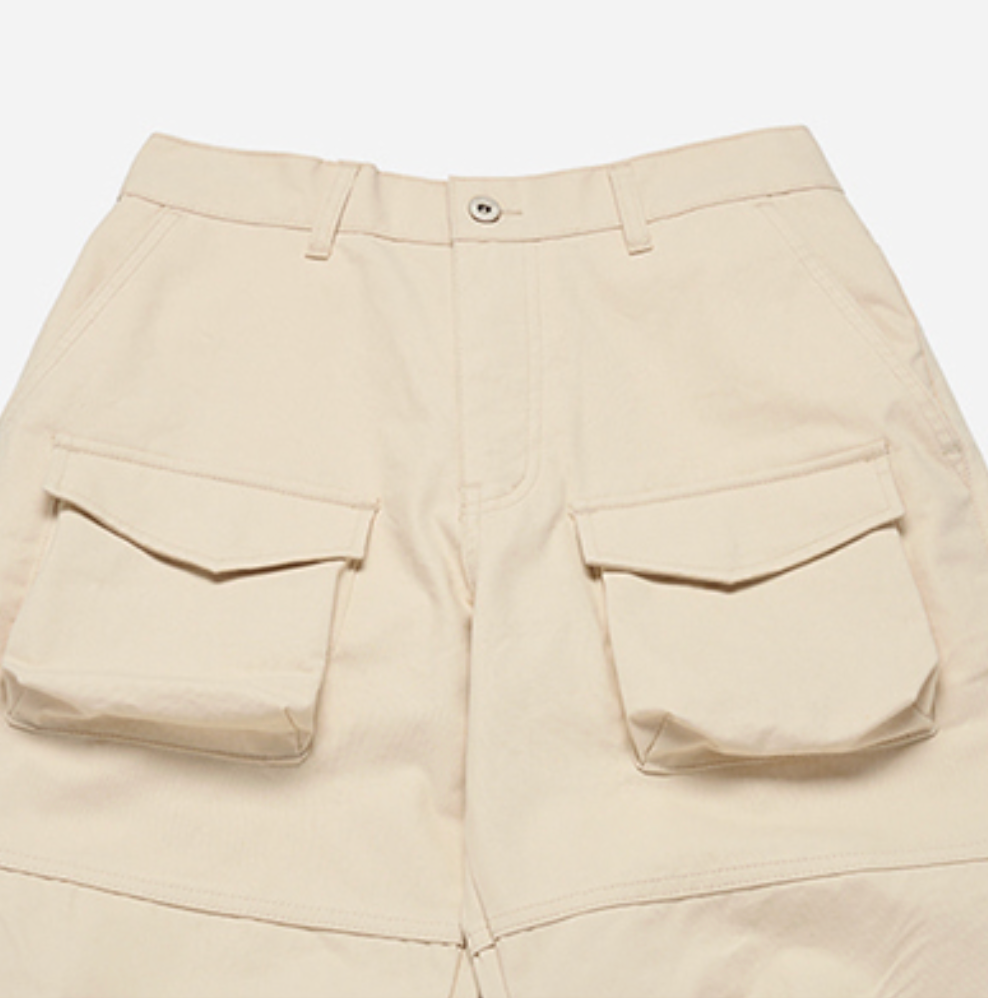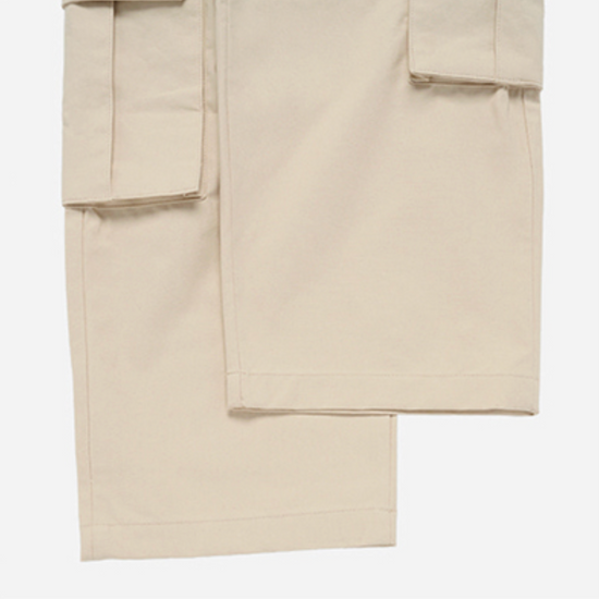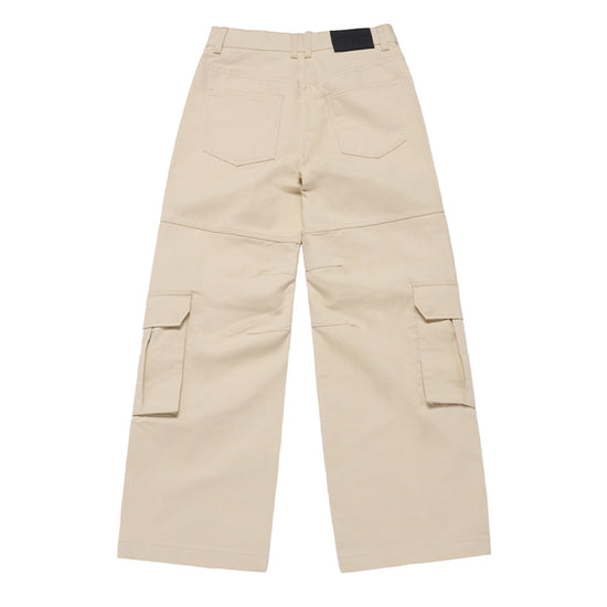 FRONT POCKET WIDE CARGO PANTS BEIGE | 100% Cotton | Made in China