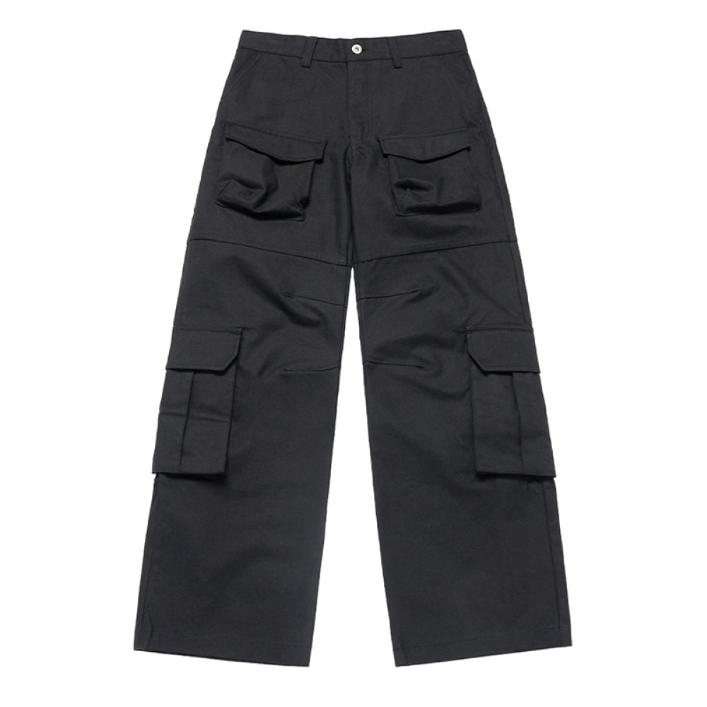 FRONT POCKET WIDE CARGO PANTS BLACK