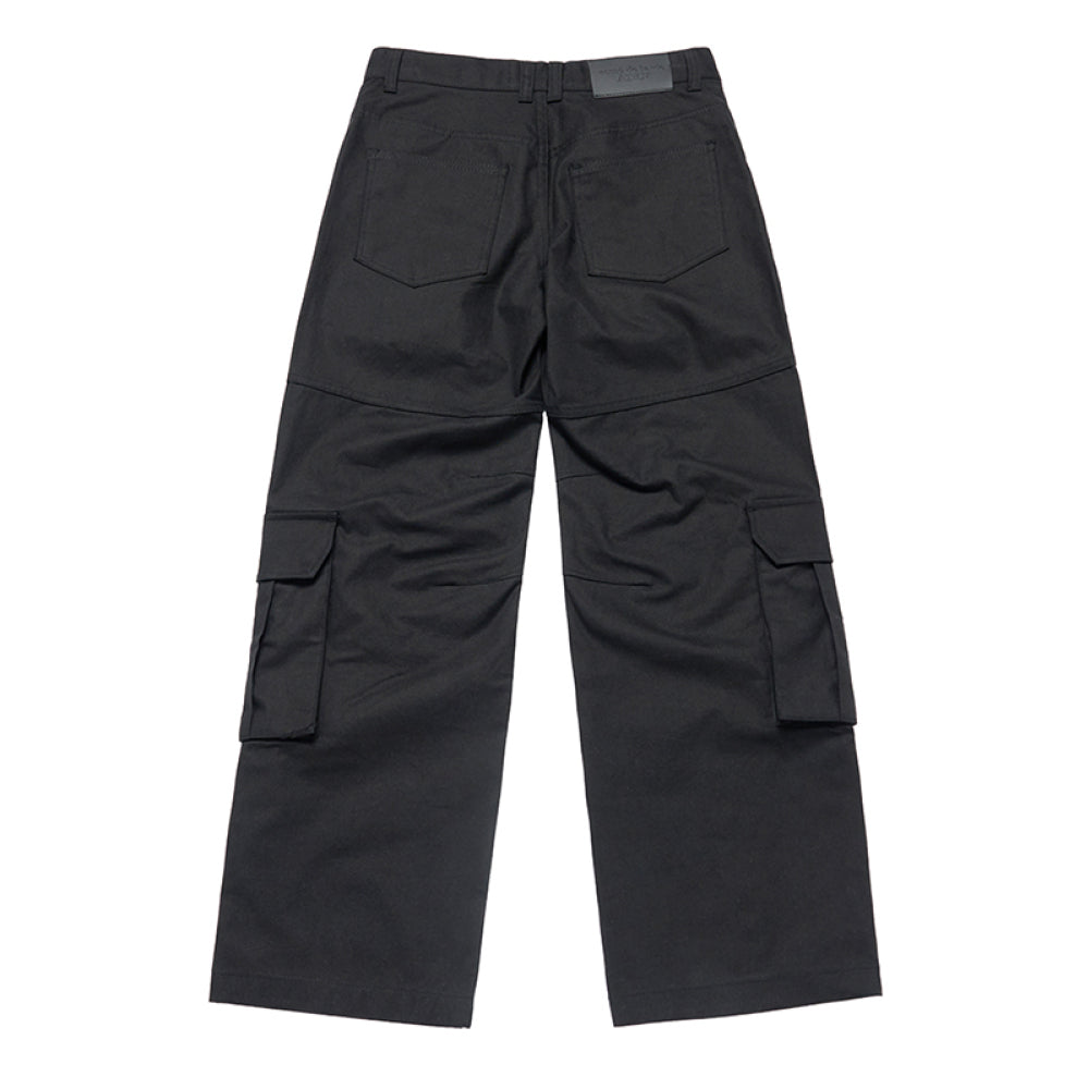 FRONT POCKET WIDE CARGO PANTS BLACK | 100% Cotton | Made in China