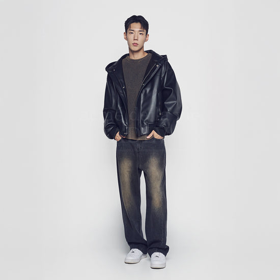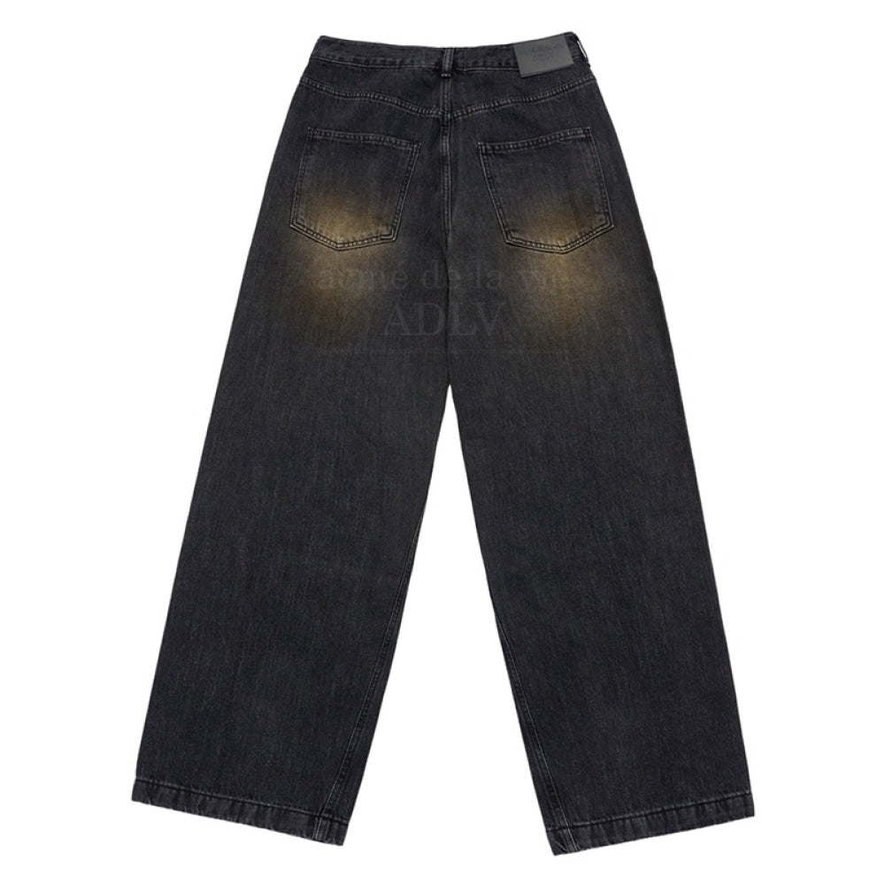 FRONT SIDE LINE SEMI TAPERED DENIM PANTS BLACK