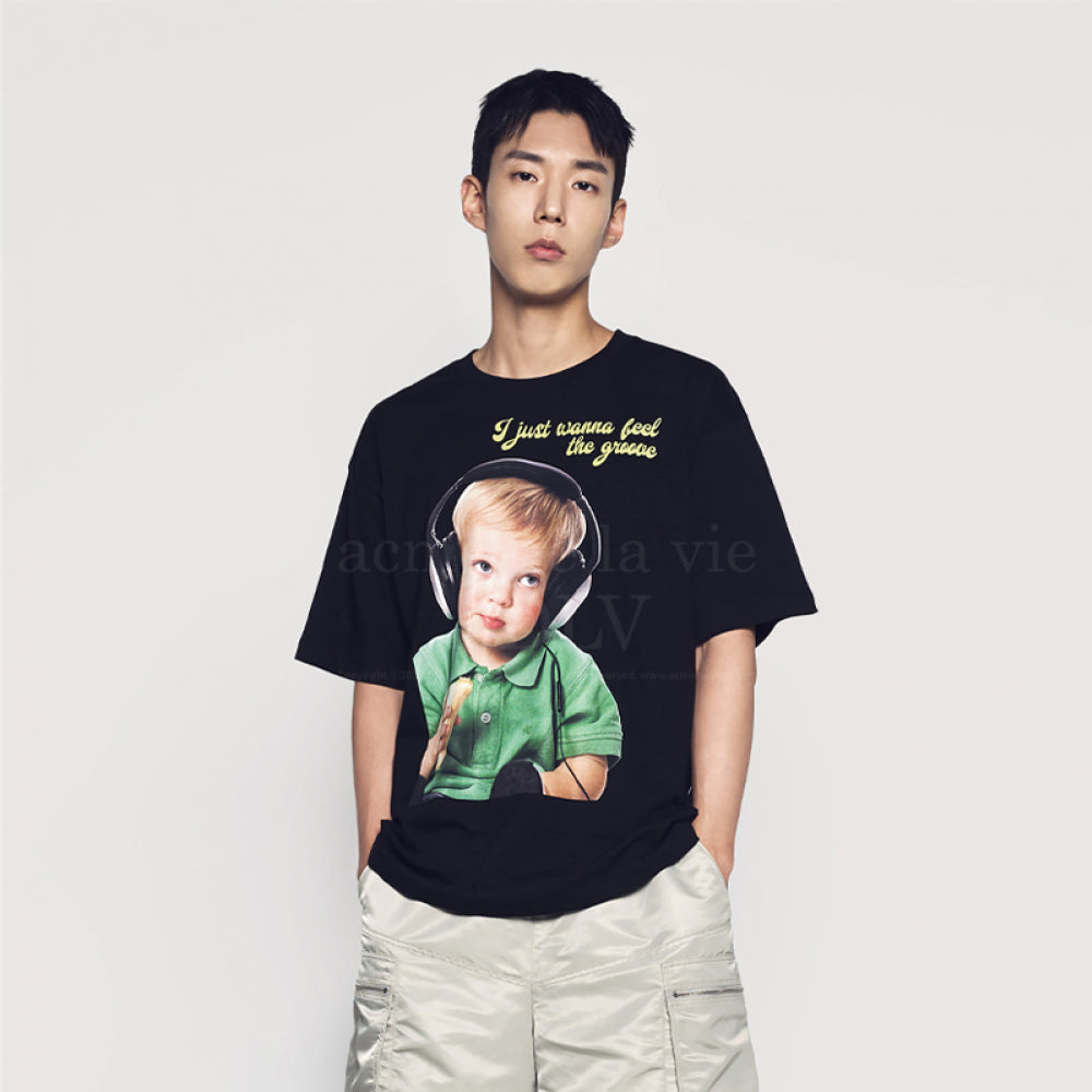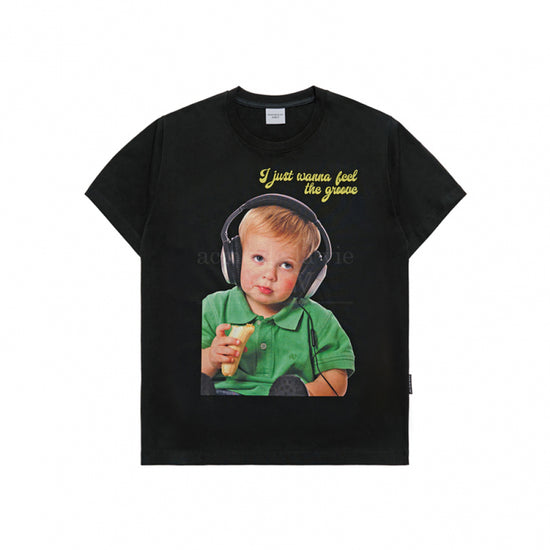 HEADSET BOY LETTERING BABY FACE SHORT SLEEVE T-SHIRT BLACK