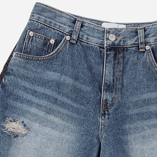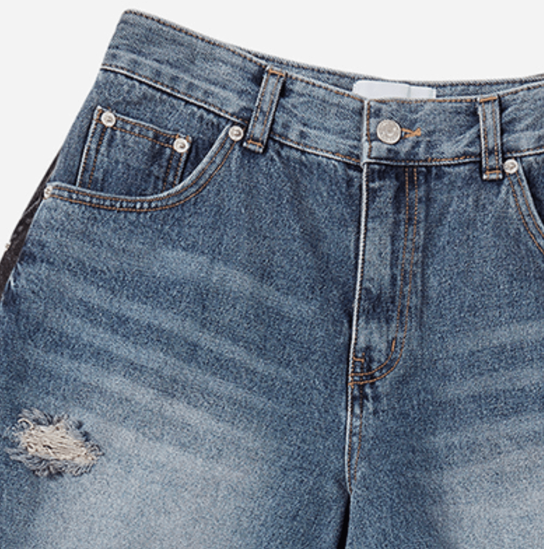 HEM LINE DESTROYED DENIM SHORT PANTS BLUE | 100% Cotton | Made in Korea