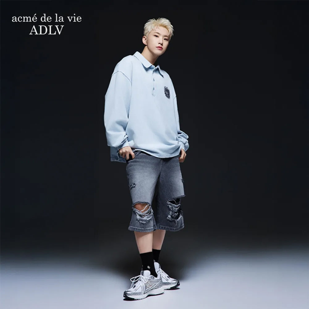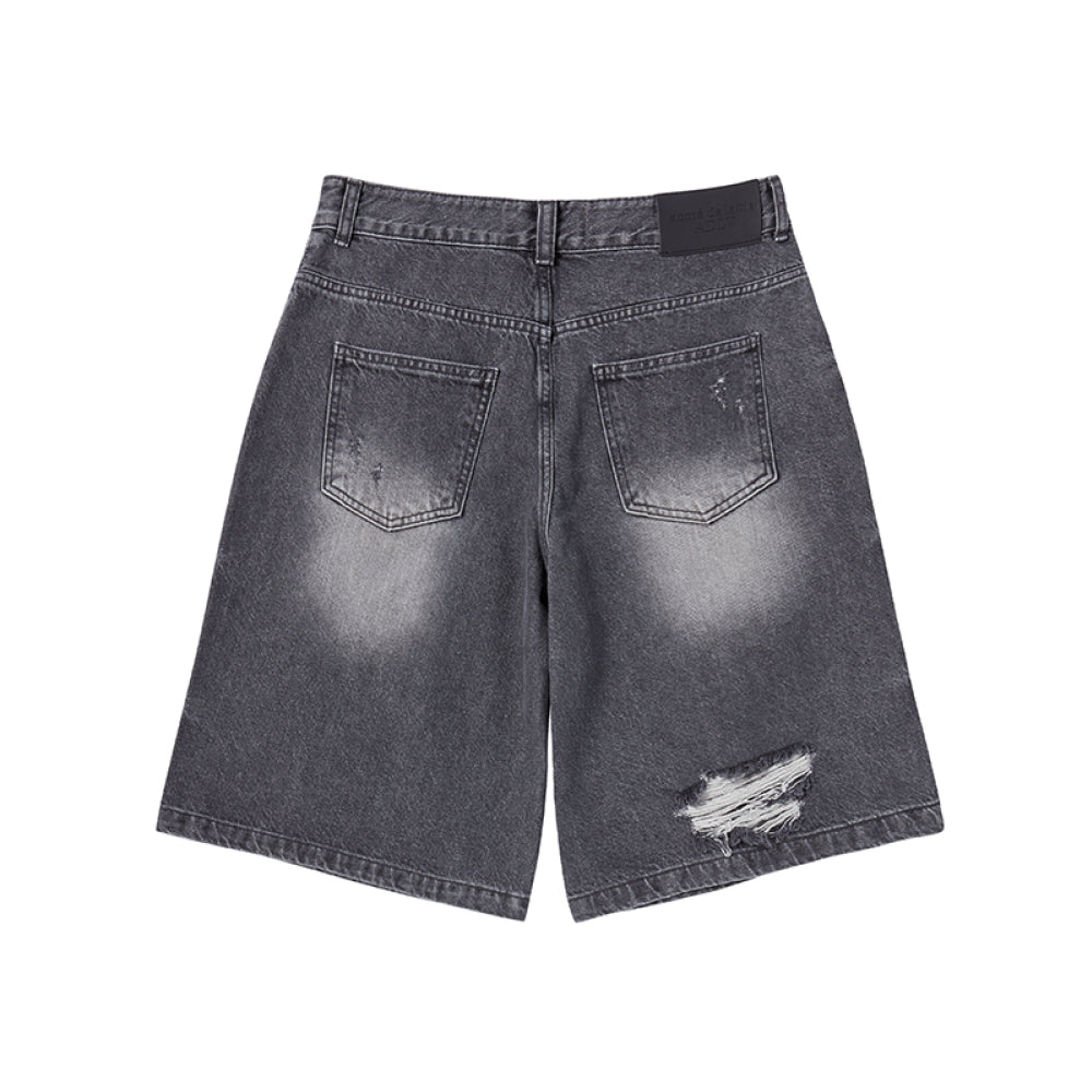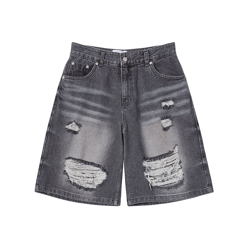 HEM LINE DESTROYED DENIM SHORT PANTS GREY