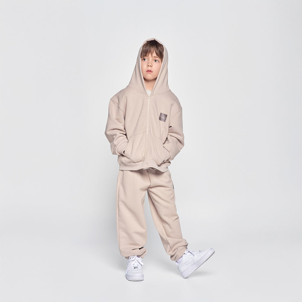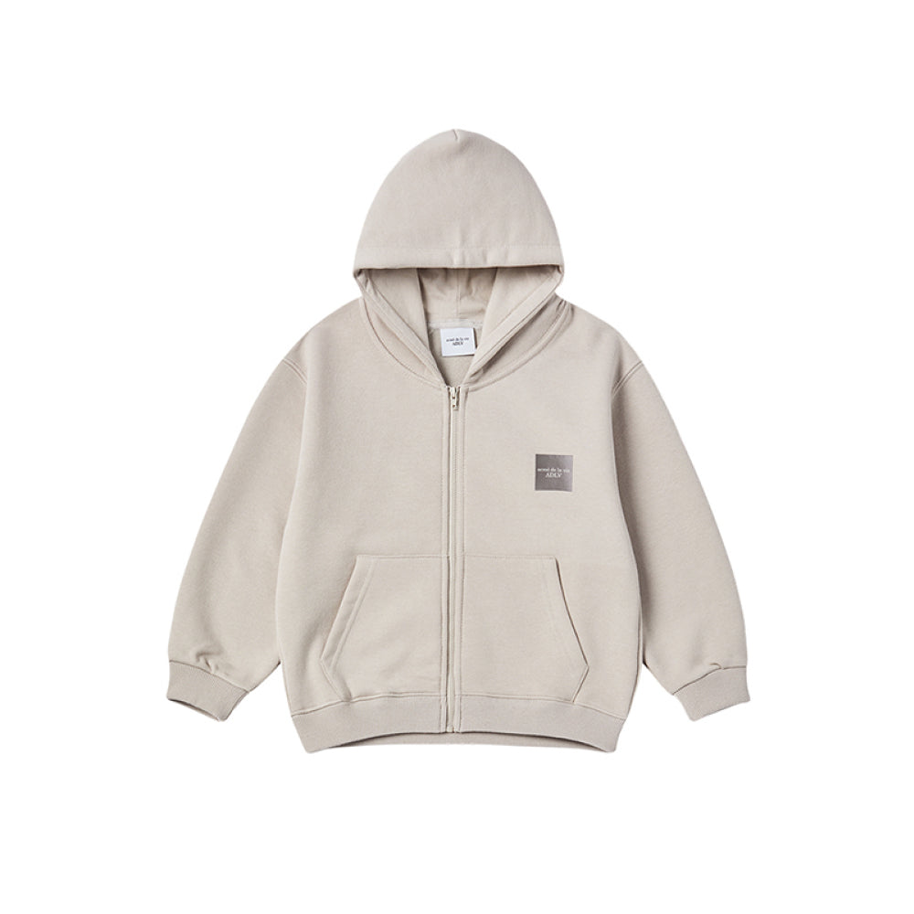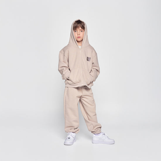 KIDS BOX BASIC LOGO HOODIE ZIP UP ESSENTIAL BEIGE