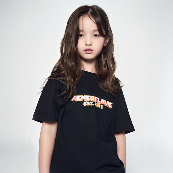 A bold and energetic kids’ tee featuring a vibrant flame-style logo across the chest. The classic black base brings out the bright graphic, making it a standout everyday piece with a cool streetwear attitude.