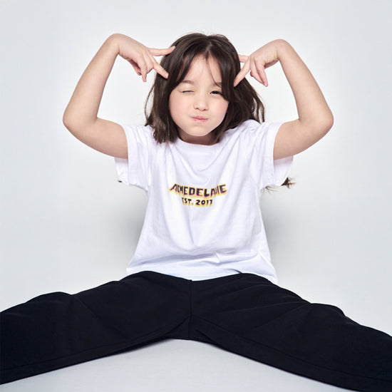 KIDS FLAME LOGO SHORT SLEEVE T-SHIRT WHITE | 100% Cotton | Made in Korea