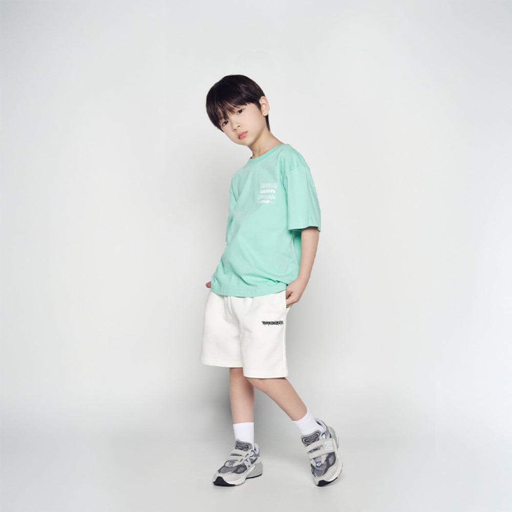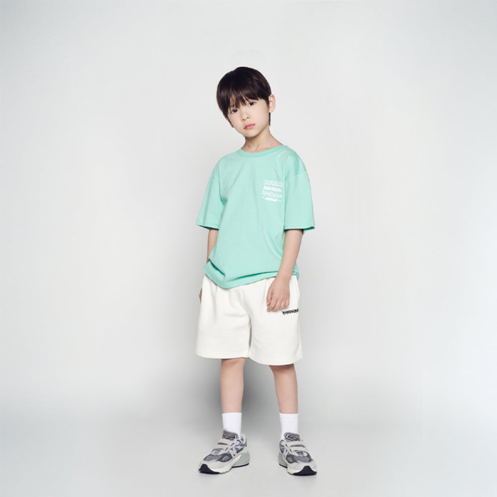 KIDS MIX TYPE GRAPHICS SHORT SLEEVE T-SHIRT EMERALD | 100% Cotton | Made in Korea