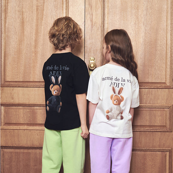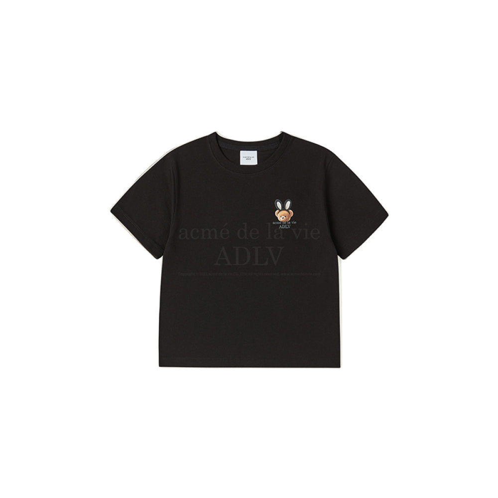 KIDS RABBIT BEAR DOLL LOGO SHORT SLEEVE T-SHIRT-BLACK