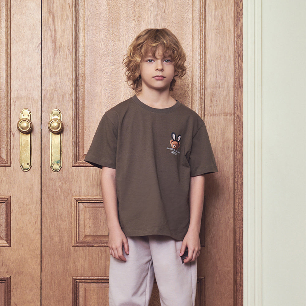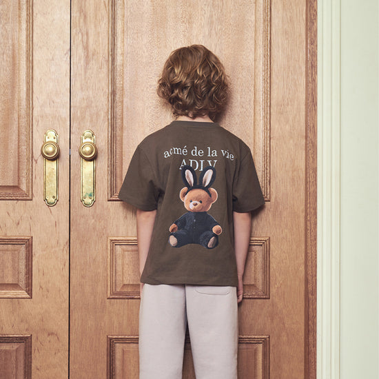 KIDS RABBIT BEAR DOLL LOGO SHORT SLEEVE T-SHIRT-COCOA