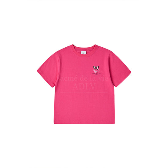 KIDS RABBIT BEAR DOLL LOGO SHORT SLEEVE T-SHIRT-DEEP PINK