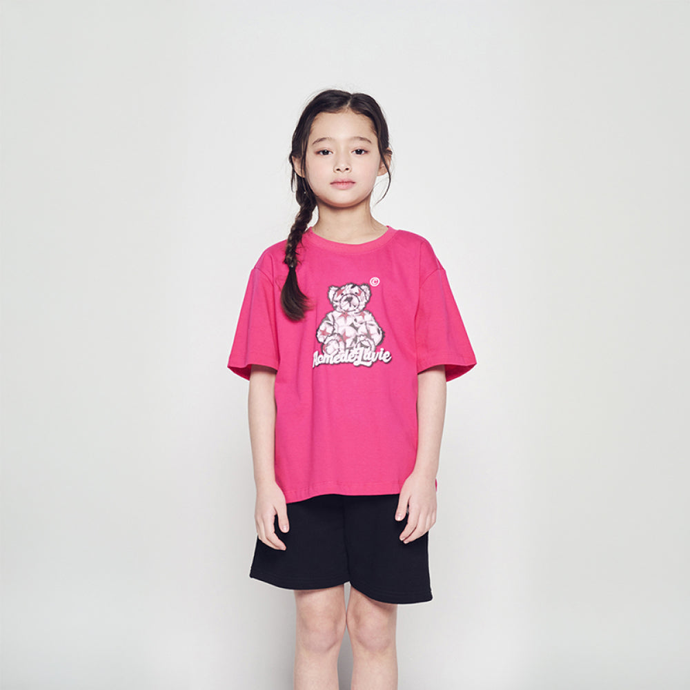 KIDS STAR BEAR SHORT SLEEVE T-SHIRT HOT PINK