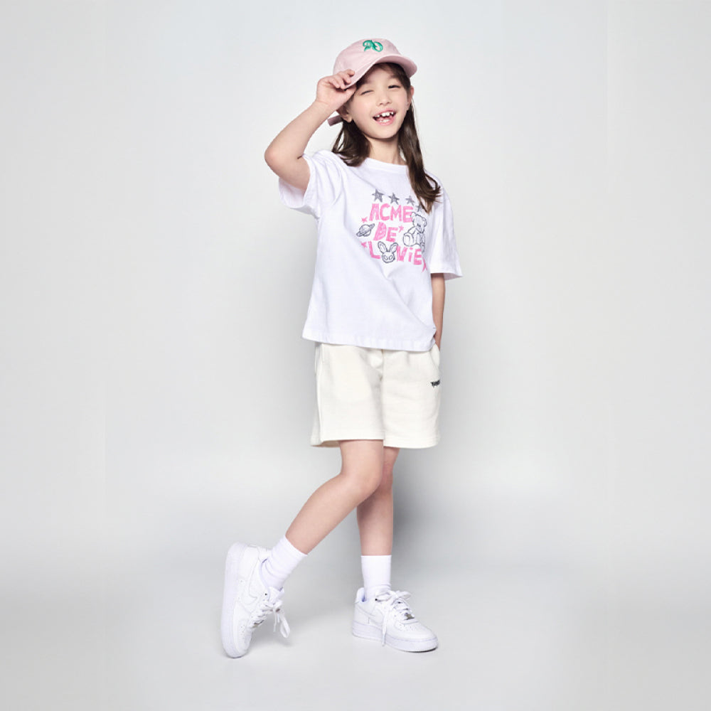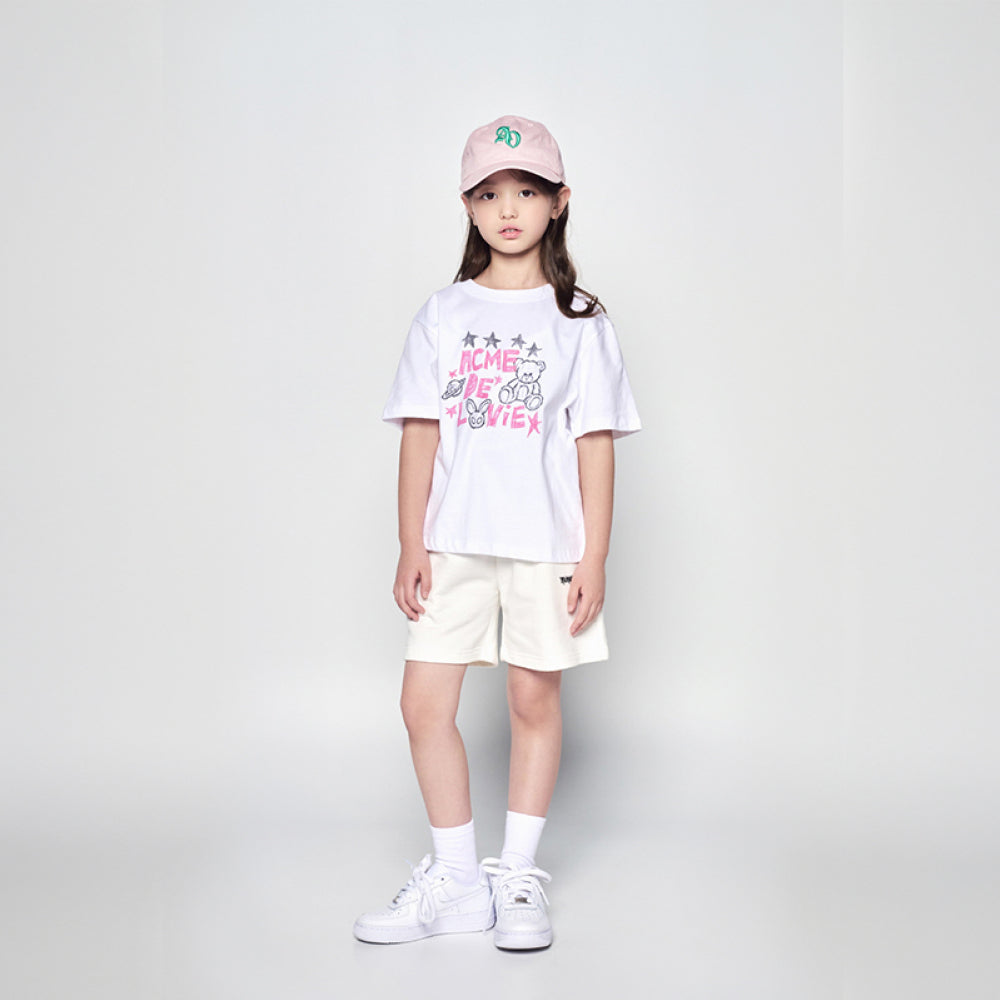 The ADLV Kids Universe Drawing Short Sleeve T-Shirt in White features a cute hand-drawn teddy bear and star design, reflecting ADLV’s signature playful streetwear spirit. Made with 100% premium Korean cotton, this soft and breathable tee ensures all-day comfort for active kids. Its simple yet creative artwork adds a fun twist to any casual outfit, making it a perfect piece for everyday wear.
