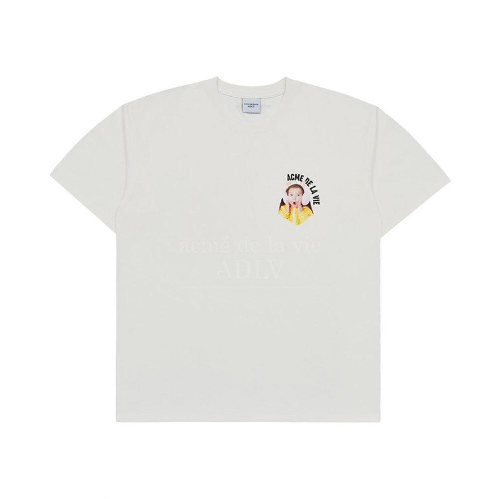 MINI BABY FACE CAT EARPLUG SHORT SLEEVE T-SHIRT CREAM