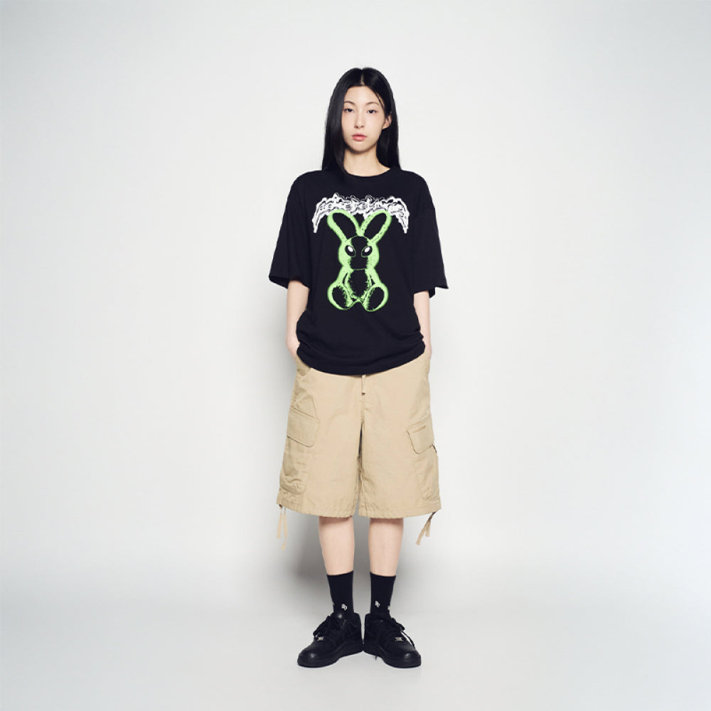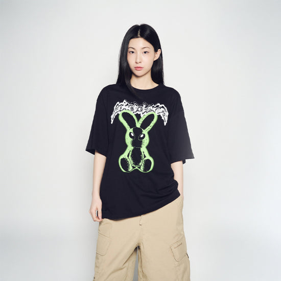 NEON ALIEN RABBIT SHORT SLEEVE T-SHIRT BLACK