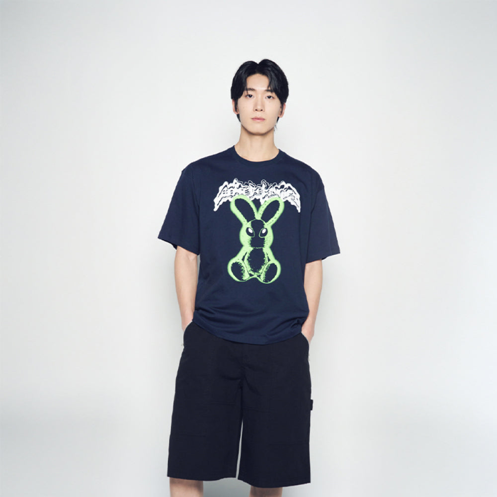 NEON ALIEN RABBIT SHORT SLEEVE T-SHIRT DARK NAVY