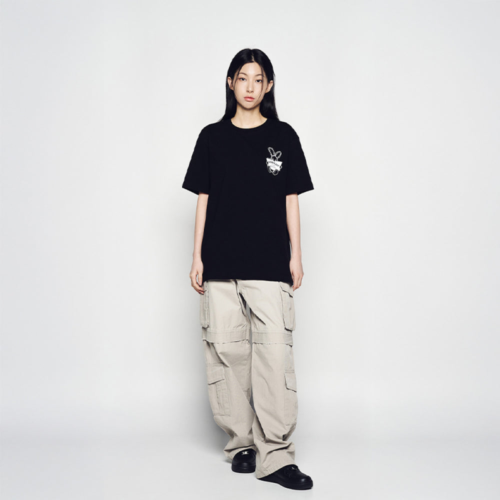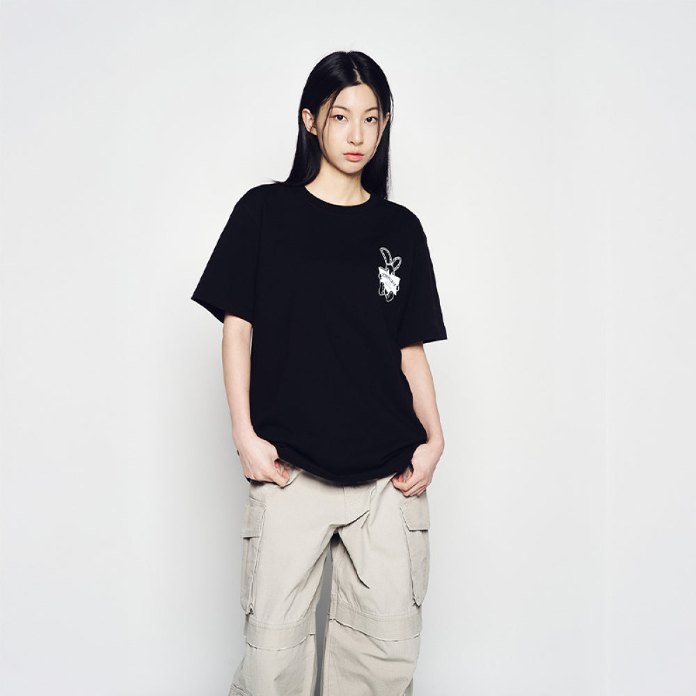 NEWSPAPER RABBIT SHORT SLEEVE T-SHIRT BLACK